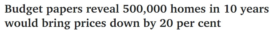 联邦预算文件显示,未来十年,澳大利亚市场将新增50万套住房,这将使房价降低20%之多。 据悉,联邦政府正计划建造120万套住房,作为其113亿澳元住房拯救计划的一部分,以解决全国住房和租房危机。 2020 年 ...
