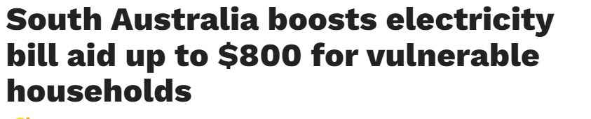 据悉,南澳政府宣布大幅扩大"Emergency Electricity Payment Scheme"(EEPS),旨在为无力支付电费的弱势家庭提供更多经济援助。 根据7月1日起生效的新修订,符合条件的南澳居民最高可获得800澳元的援助,与 ...