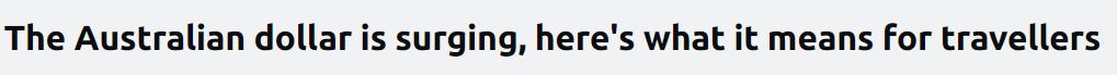 澳元飙升,兑人民币、美元、欧元、新西兰元、日元汇率达6个月高点,成为全球第二强劲货币! 上周末,澳元升至六个月高点,成为全球第二强劲货币,这对旅行者来说可能意味着好消息,这取决于您要去哪里。 澳大利 ...