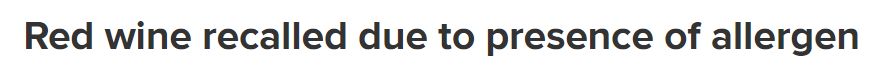 据悉,一款红酒被召回,原因是其中可能含有一种未申报的过敏原。 Brand New Vintage公司召回了几瓶Journeyman Shiraz 2021。 受影响的酒瓶上标有批号ID:L123214.它含有的过敏原是亚硫酸盐。 澳大利亚新 ...