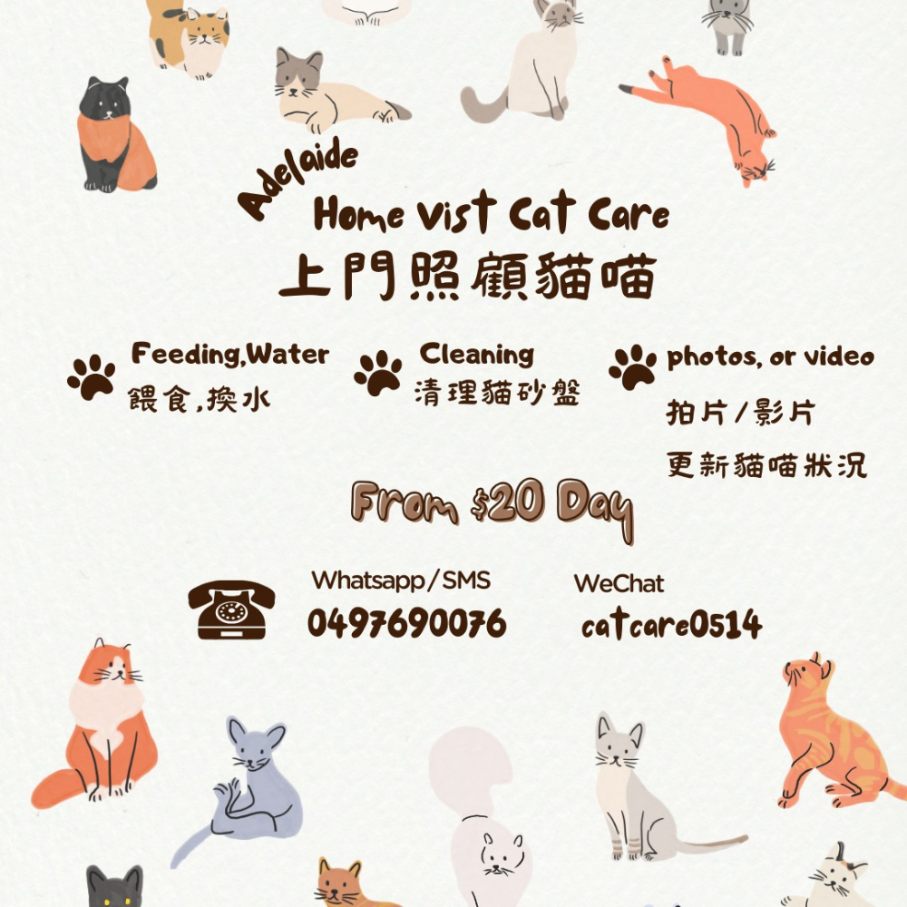 專業上門照顧貓喵 讓你安心出旅 WhatsApp/SMS:0497690076 WeChat : catcare0514 歡迎查詢!