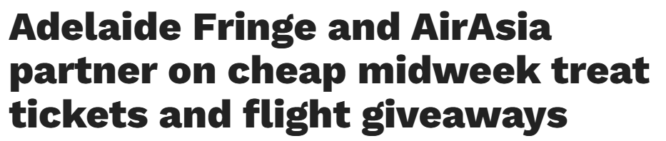 • Adelaide Fringe与亚洲航空合作推出"周中特惠票"及机票抽奖!