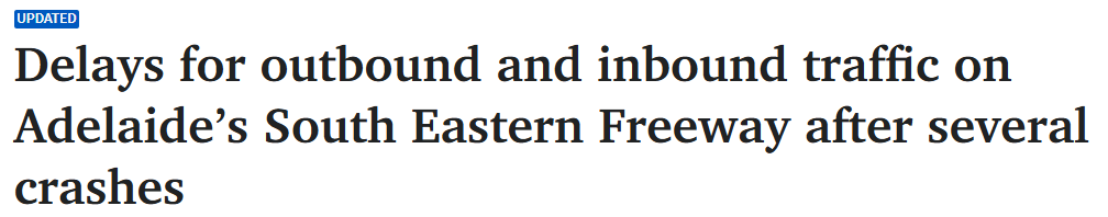 • 阿德South Eastern Freeway突发多起事故,致双向交通延误!