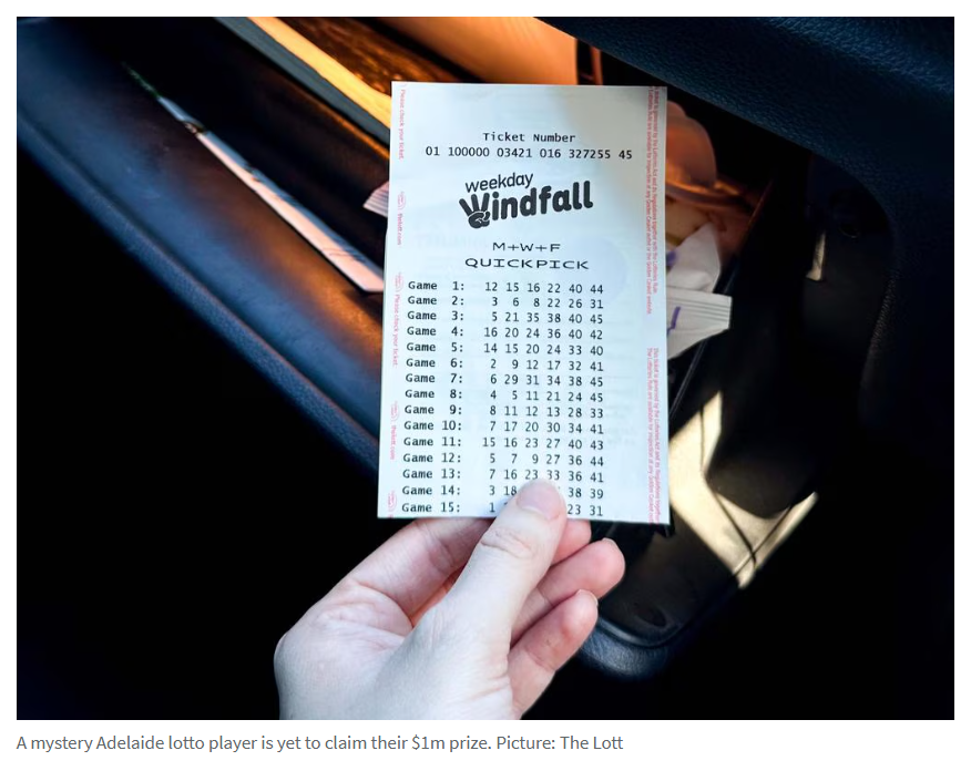 据3月13日报道,阿德一位彩民在Unley购买的一张乐透彩票中了100万澳元,但他本人却毫不知情。 这张全国唯一的一等奖中奖彩票于周三晚开出,但据官方透露,由于中奖者未进行注册登记,因此无法与其取得联系。该彩票 ...