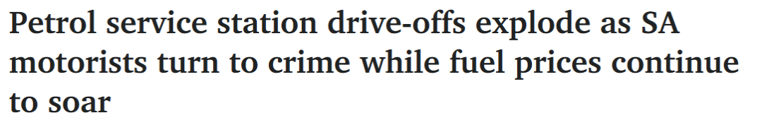据报道,不断飙升的燃油成本迫使南澳人铤而走险,加油后逃单现象激增超过三分之一,普通民众首次转向此类盗窃行为。 "逃单事件环比一周增加了37%,从之前一周的132起增至过去一周的221起。"上周的逃单事 ...