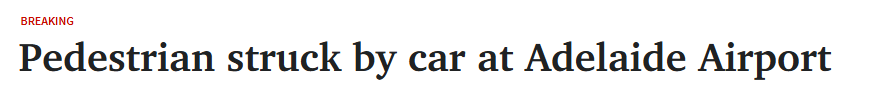 • 阿德莱德机场一名行人被汽车撞倒!