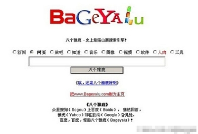 众里搜狗上百度,暮然回首,雅虎却在股沟旮旯处,百度,百度,惊起八个雅鹿。史上最强的山寨搜索引擎!
