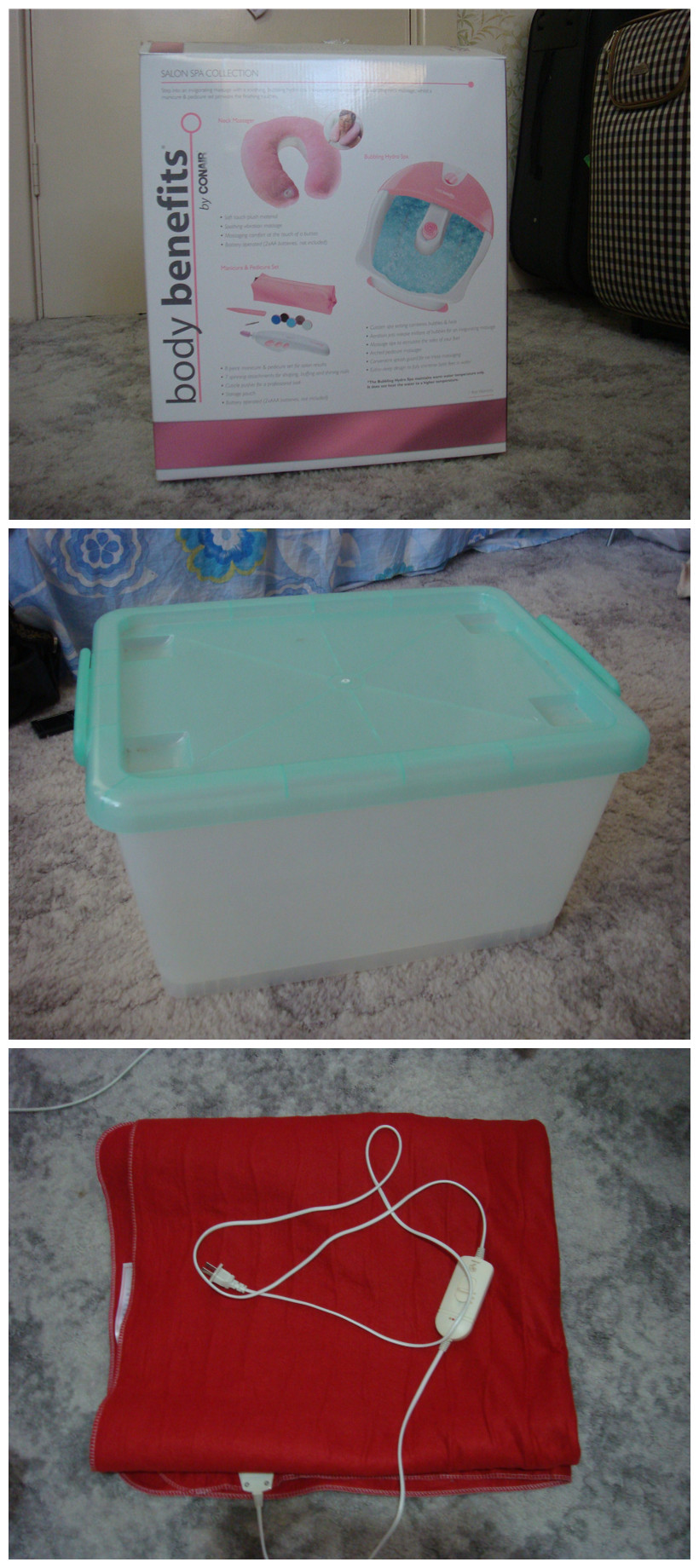 本帖最后由 DreamQueen 于 2012-1-27 12:23 编辑 按摩枕头加按摩泡脚器$18(已售) 储物箱 $5(已售) 电热毯 $10 (已售)