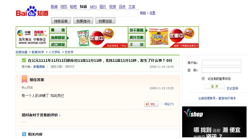本帖最后由 jmanliu 于 2011-11-5 18:06 编辑 =.= 其實公元1111年11月11日...是宋朝....他們應該不會用..西歷吧... 耶穌他們又不認識..