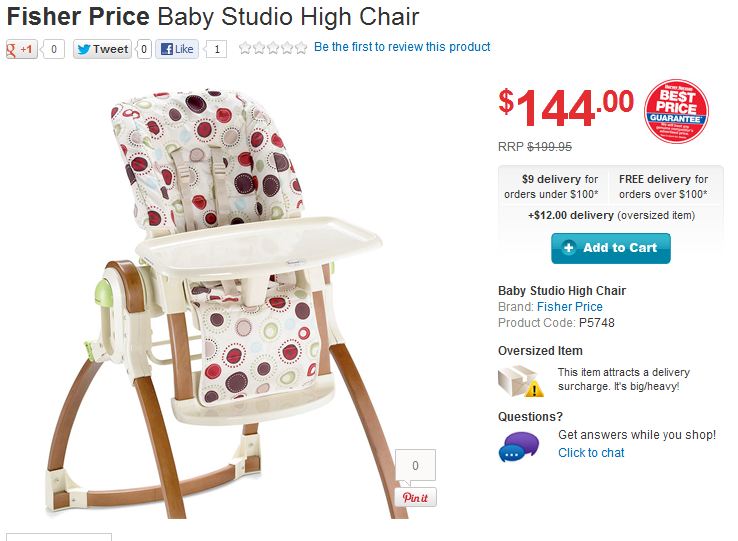 • Fisher Price high chair $144 @ Harvey Norman baby and toys