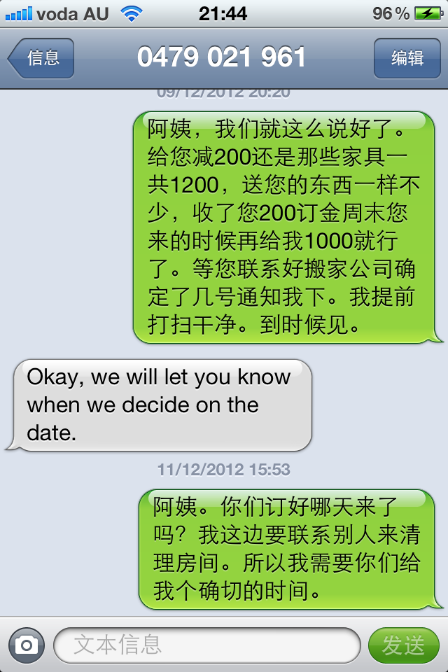 本帖最后由 XD159753 于 2012-12-13 17:58 编辑 上个周末一对夫妻来家里看家具 说是家里有两套房 要买家具给自己在福林德斯大学附近的房子 给留学生住 很快他们很阔气的就要购买基本上全部的家具 我心里感到跟开 ...