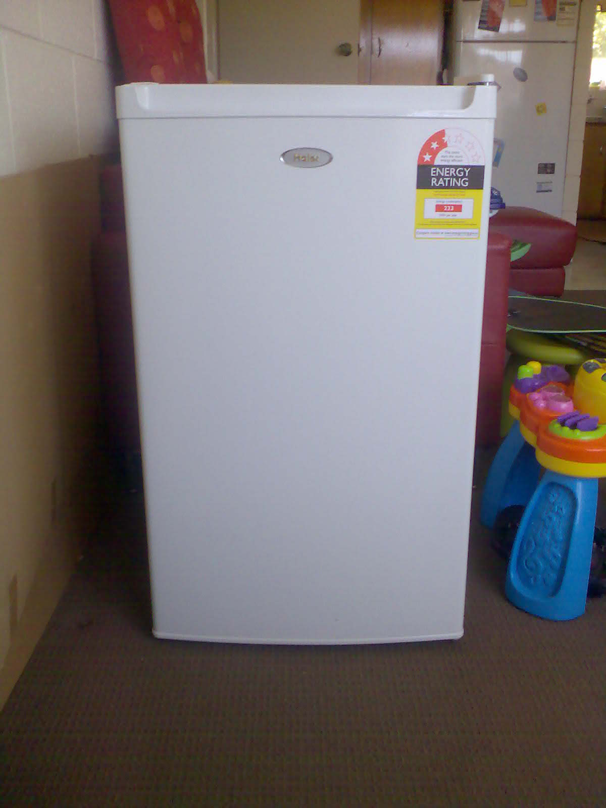 卖全新海尔小冰柜 容积82升,价格150刀,适合家里冰箱冷冻室不够大的人家使用 联系电话0430176588