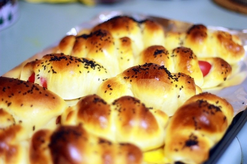 easter假期聚会多野餐多,每天晚上都在做点心。 香肠包