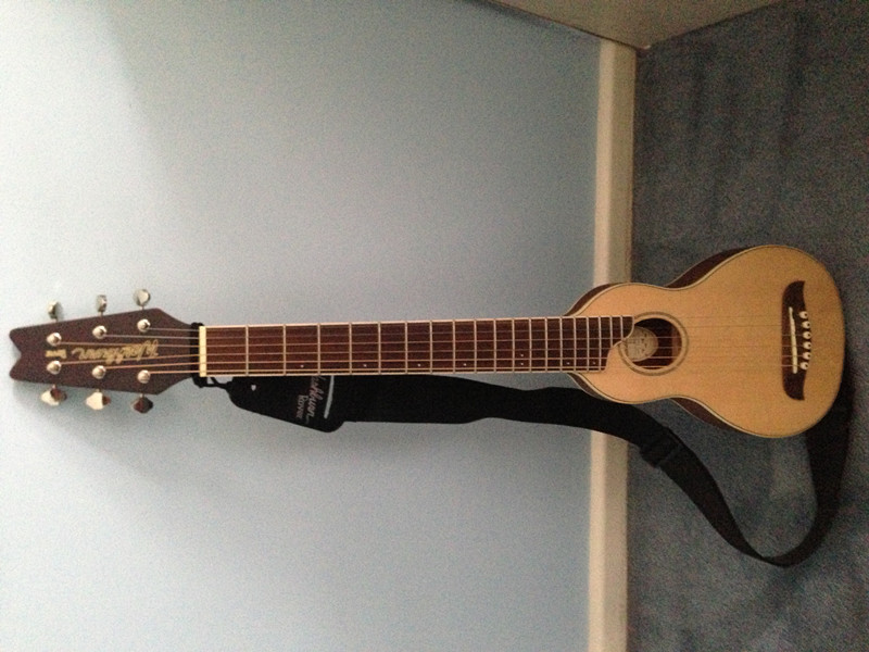 三月14号买的 Washburn的旅行吉他, 现状良好, 没弹几次, 方便携带,喜欢随时弹唱的朋友非常适合, 原价400刀左右, 现在卖300刀好了,不废话, 上图