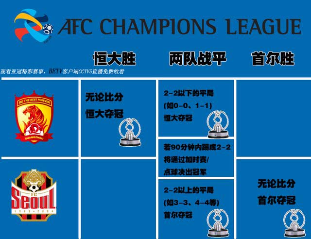 首回合2-2战平首尔FC,坐拥两个客场进球让回到天河主场的恒大是问鼎亚冠的最大热门,明天的比赛恒大只要不输球,或者不和对手战成高比分的平局就将稳定冠军。北京时间11月9号20:00,CCTV5直播,同胞一心,为恒大加 ...