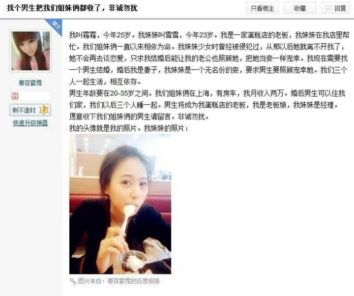 哪位大侠能收了这俩姐妹?