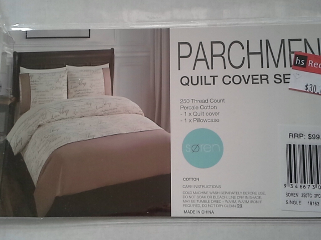 本帖最后由 GeniusDeath 于 2014-4-16 16:37 编辑 在Harris Scarfe买了一个单人被套配枕套一个,原本想买双人的,结果今天回家清洗完准备用才发现是单人的。。。30刀出,可以接受小幅度negotiate. 有意者可短 ...