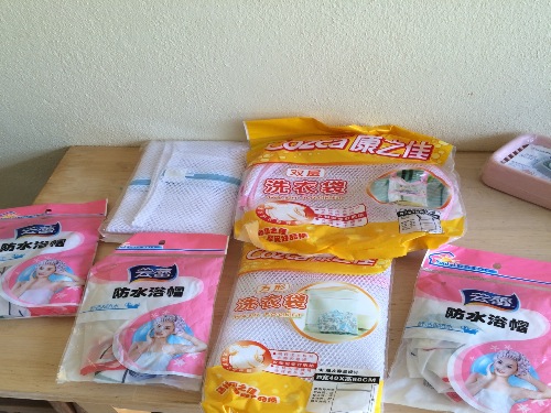 1,浴帽 $2 2,洗衣袋 $4 3,酒杯,$1/支 4,烘培小工具 $1/件 5,擦丝板 $2 6,iPad 皮袋。$2 7,汤勺,$1 8,冰激凌勺,$2