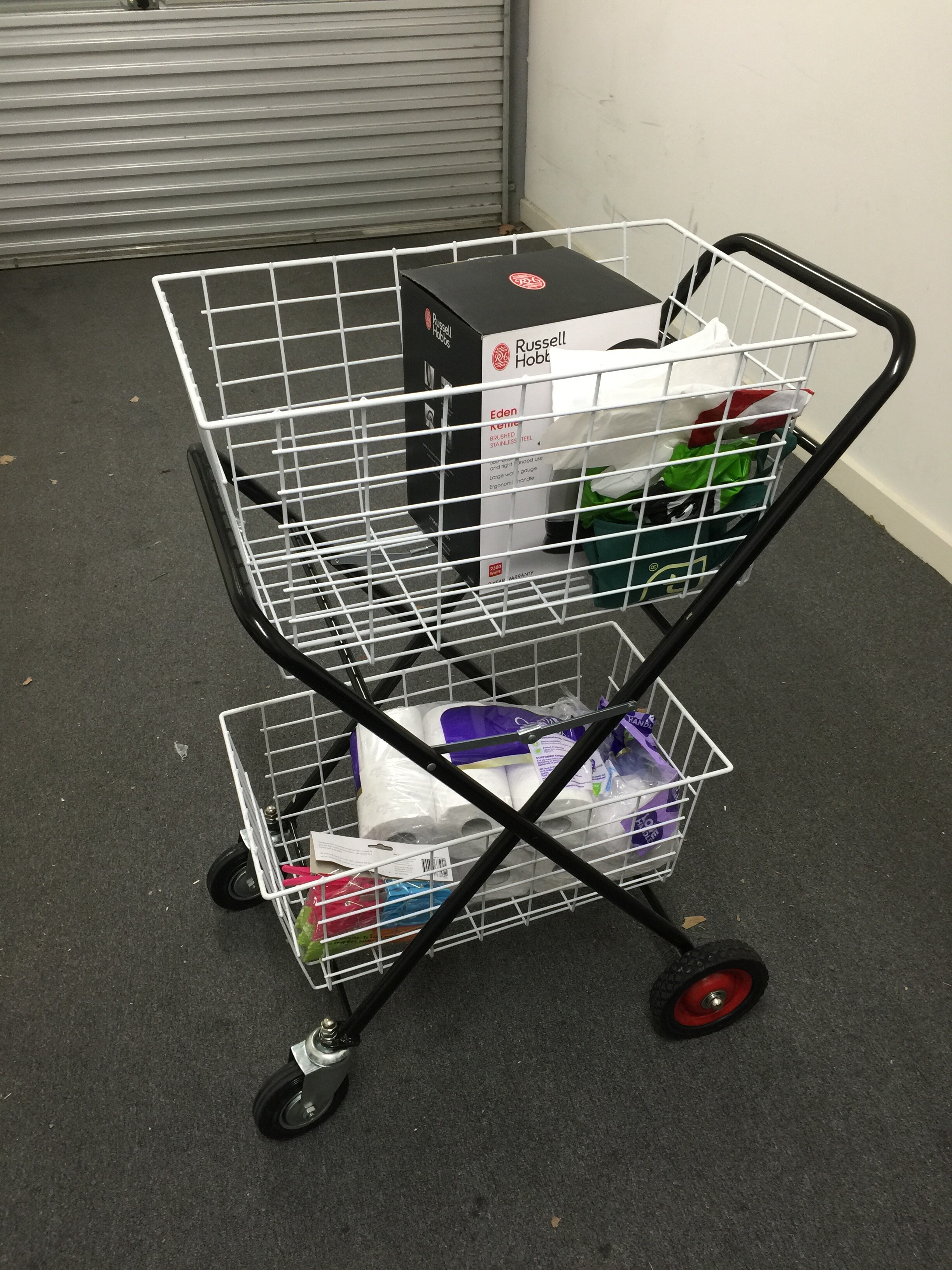 本帖最后由 angle007 于 2014-11-12 13:23 编辑 卖个豪华购物推车,除了买回来推出去过,还没出过门。因为搬家用不上了,所以nearly全新的卖掉。轮子带轴承的,前轮有定向转弯,用起来很轻巧方便。不用时两个筐子 ...