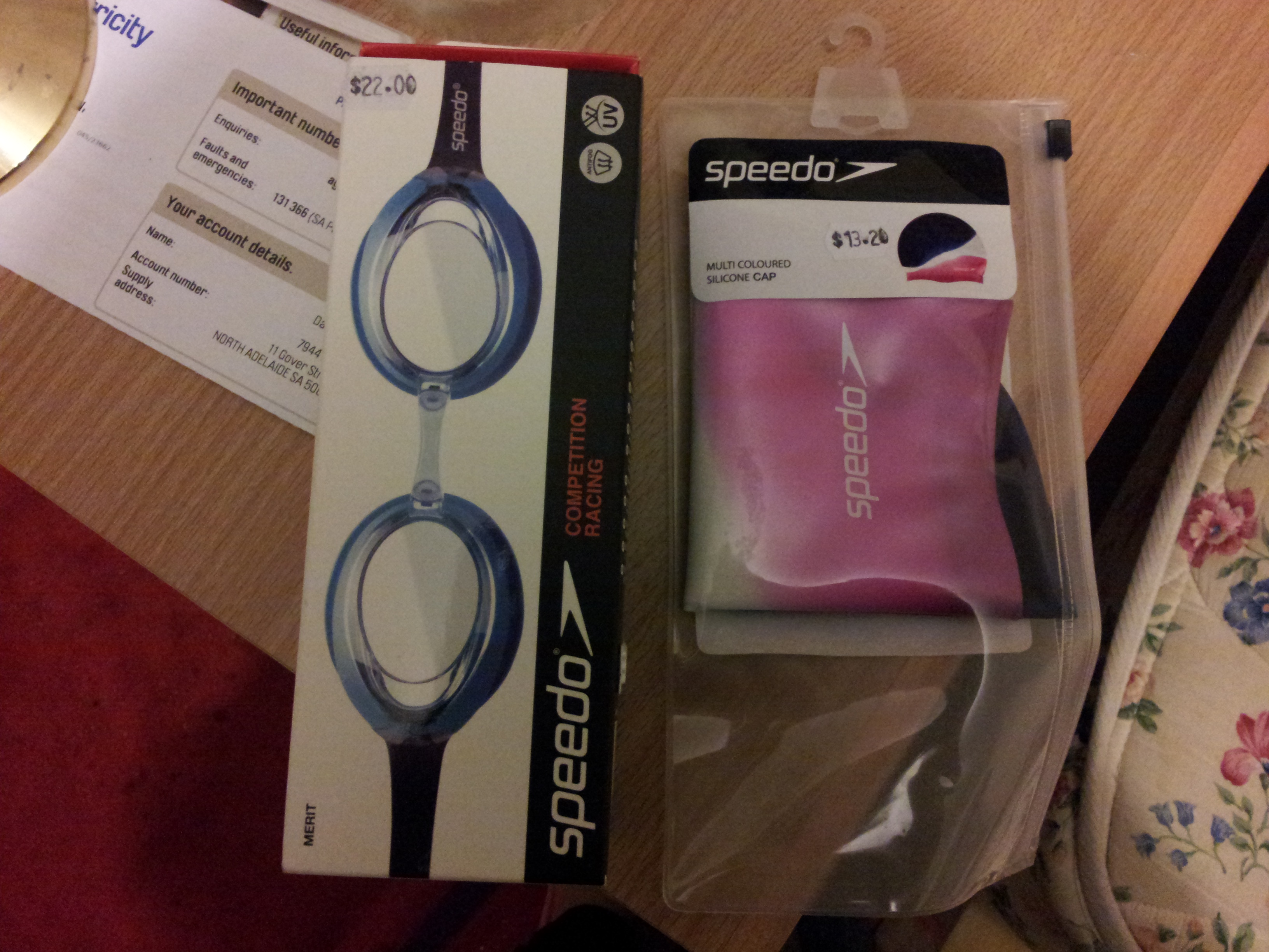 RT 泳镜 原价22 泳帽原价13.2刀 现在 泳镜 12刀 泳帽 8刀 打包带走18刀一起 电话 0401338139