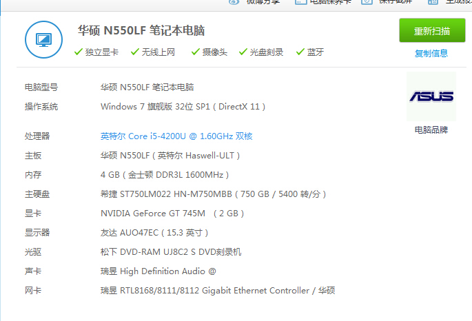 • 卖个笔记本电脑ASUS N550L 触摸屏