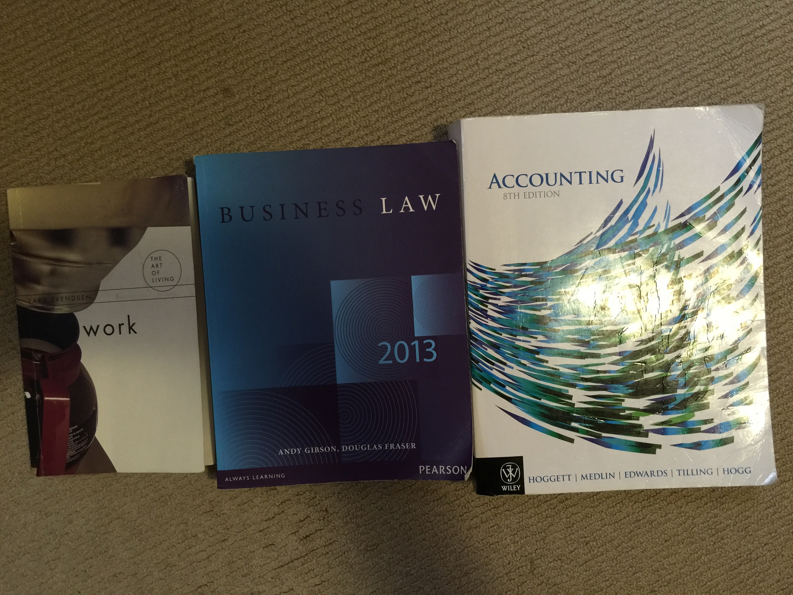 本帖最后由 dch 于 6-3-2015 10:55 AM 编辑 转让南澳大学和SAIBT商科用书Accounting+Business society +Business law,几乎全新(附带所有Assignment+所有的考试重点+law每周的网上考题),Accounting85刀,law30 ...