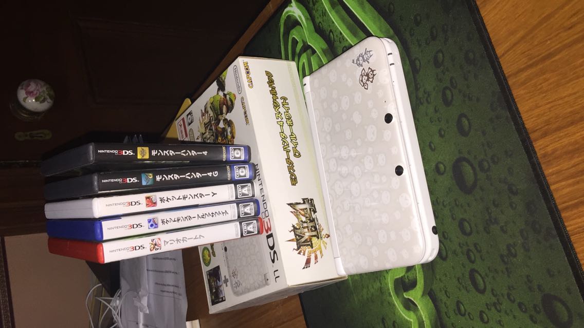 游戏有怪物猎人4,怪物猎人4g,马里奥赛车7,口袋妖怪新蓝宝石,口袋妖怪y。 机子是怪物猎人4的白色限定机。