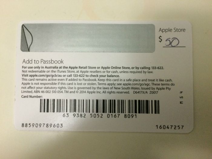 本帖最后由 sophiamay 于 3-8-2015 08:40 PM 编辑 今有APPLE官方代金卡面值50澳元,可在APPLE官方实体店应用,售价40澳元。 只限在city自取,有意者可以短信联系! 联系方式0450702078 ...