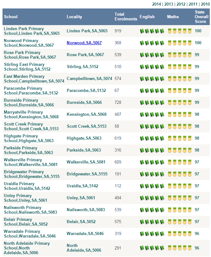 阿德莱德公立小学排名 (2014年更新版):