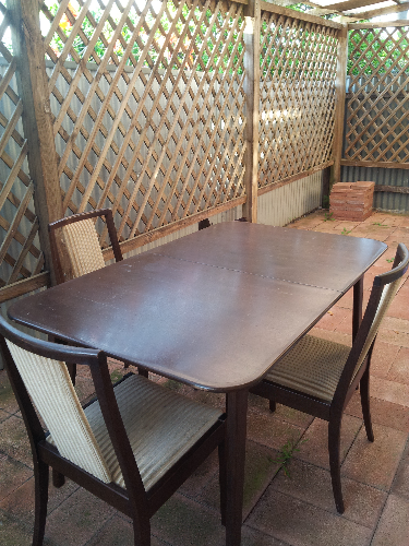 本帖最后由 qing199 于 11-11-2015 06:28 AM 编辑 售一张餐桌加3张椅子,餐桌可以伸缩加长,如图,售40刀,联系电话0435907008