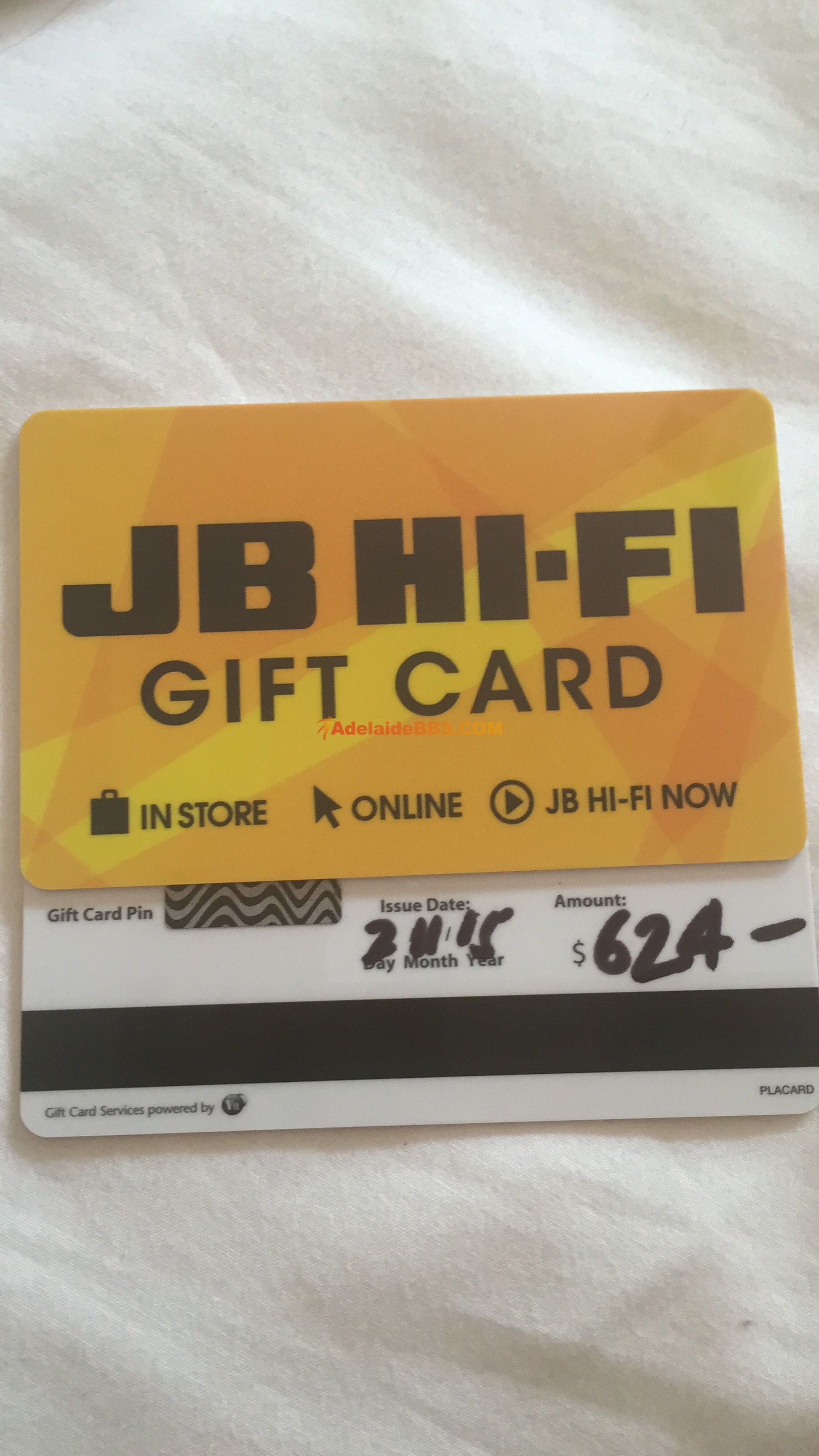 95折出售两张JB HIFI的gift card,面值分别为$91和$624,可议价。有效期限是两年 联系方式: