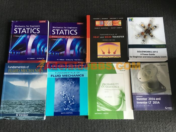 Master of Mechanical Engineering 毕业季,多本textbook低价甩卖,可小刀,先到先得 LEI, 0420881566 1) STATICS, 13 edition STATICS, STUDY PACK, 13 edition 2) FUNDAMENTALS OF HEAT and ...
