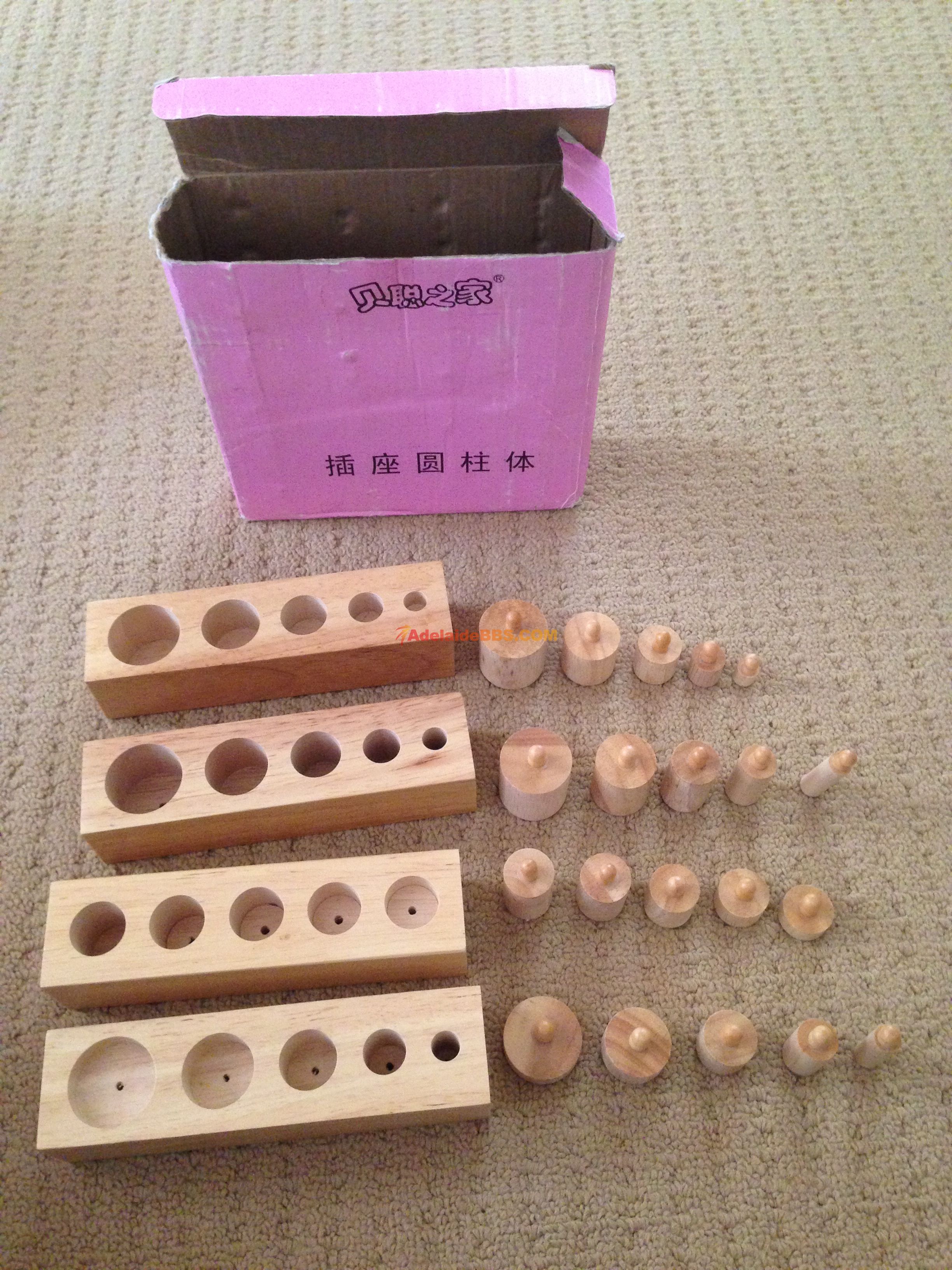 如题,出售蒙台梭利教具家庭版 插座圆柱体,粉红塔,棕色梯,数棒,纺锤棒箱和色板 其中前三样适合2岁+的孩子,后三样适合3.5岁+的孩子 使用方法大家可以通过baidu或者youtube查询 所有东西打包处理,不 ...