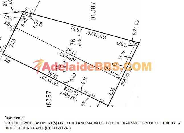 如图, 要买的房子建在allotment 75上,和邻居lot 76车库有公共墙,但不是很理解为何图中76的easement C (underground electricity cable)也出现在了lot 75的title certificate里,而且貌似左侧邻居的carport gutter ...