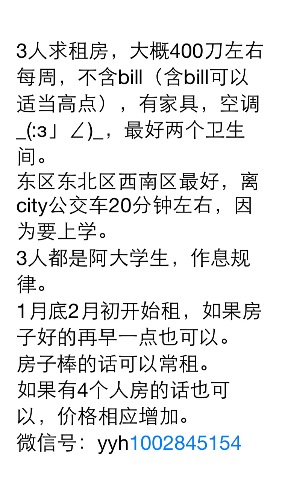 三人求整租House!!