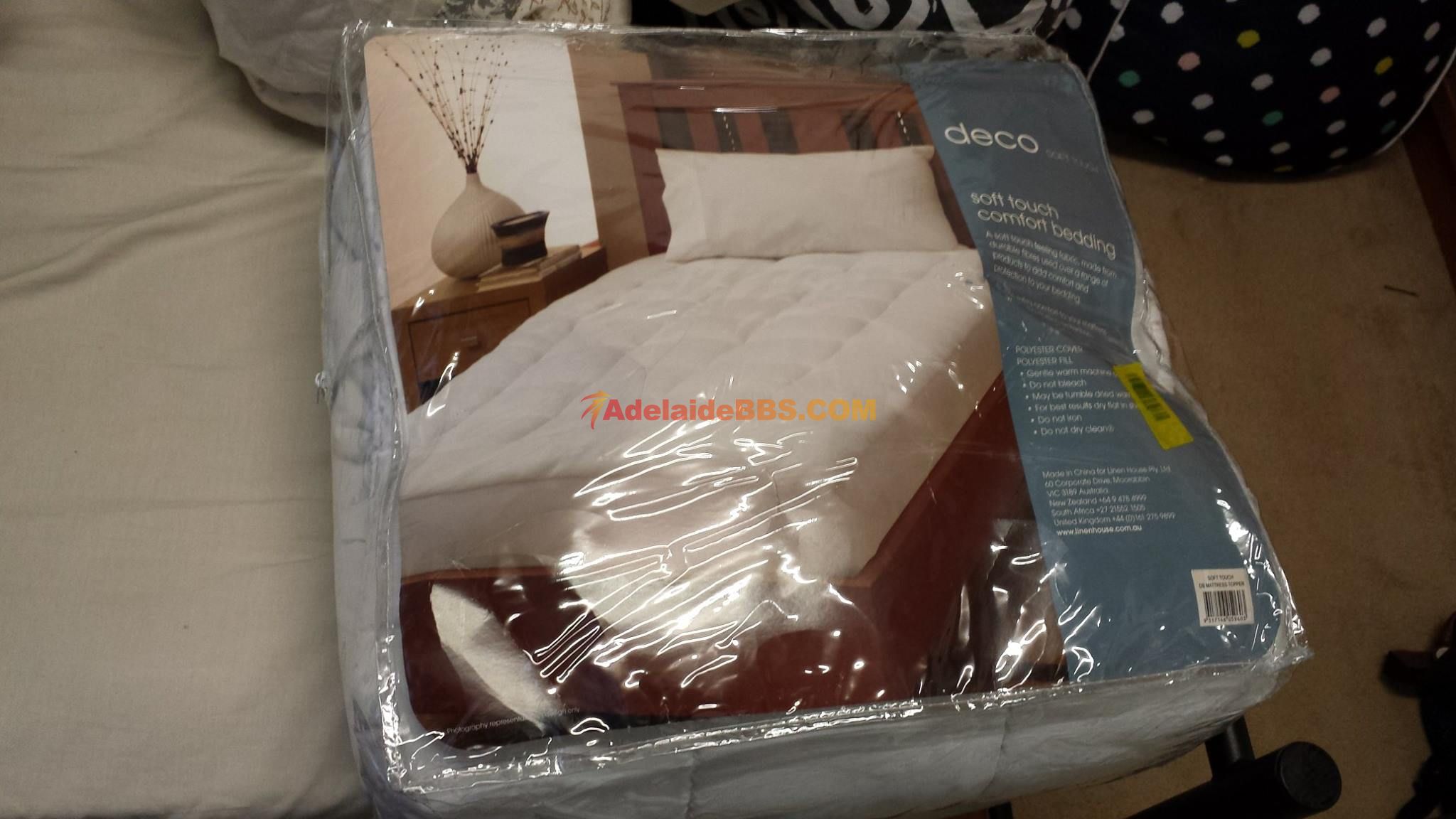 賣一個全新的deco double size mattress topper,$20,,鋪在床墊上面令床睡得更舒服的同時也當mattress protecter 用.... 可以自取(地點在Flinders Uni附近),也可以商量時間送到city..有意请联系0426967443(短讯only)