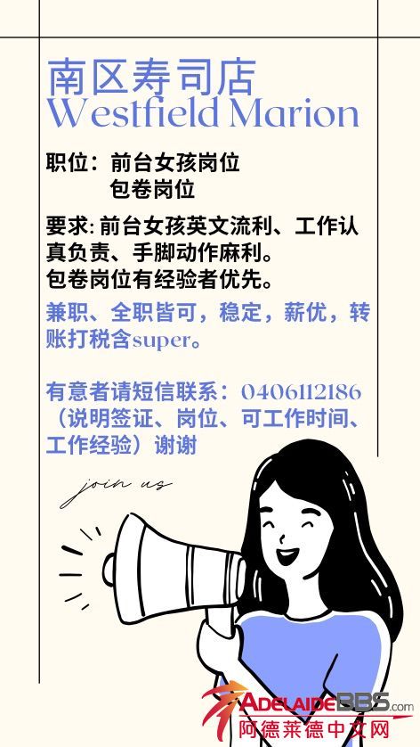 阿德南区近City寿司店招聘小伙伴,上班时间 ...