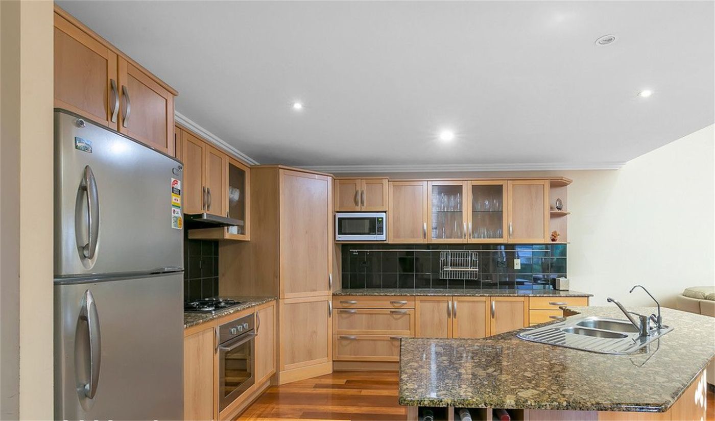 - 开放式厨房配有燃气灶台、烤箱、洗碗机、双水槽、食品储藏室,内置酒架的大岛式长凳