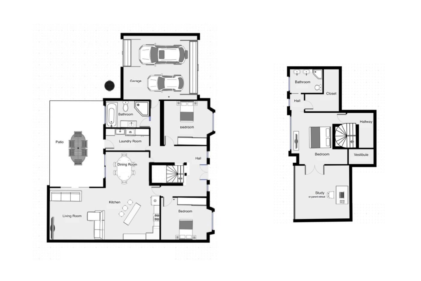 - 二楼超大主卧配有独立休息室、衣柜和独立卫浴,休息室采光充足直通观景阳台