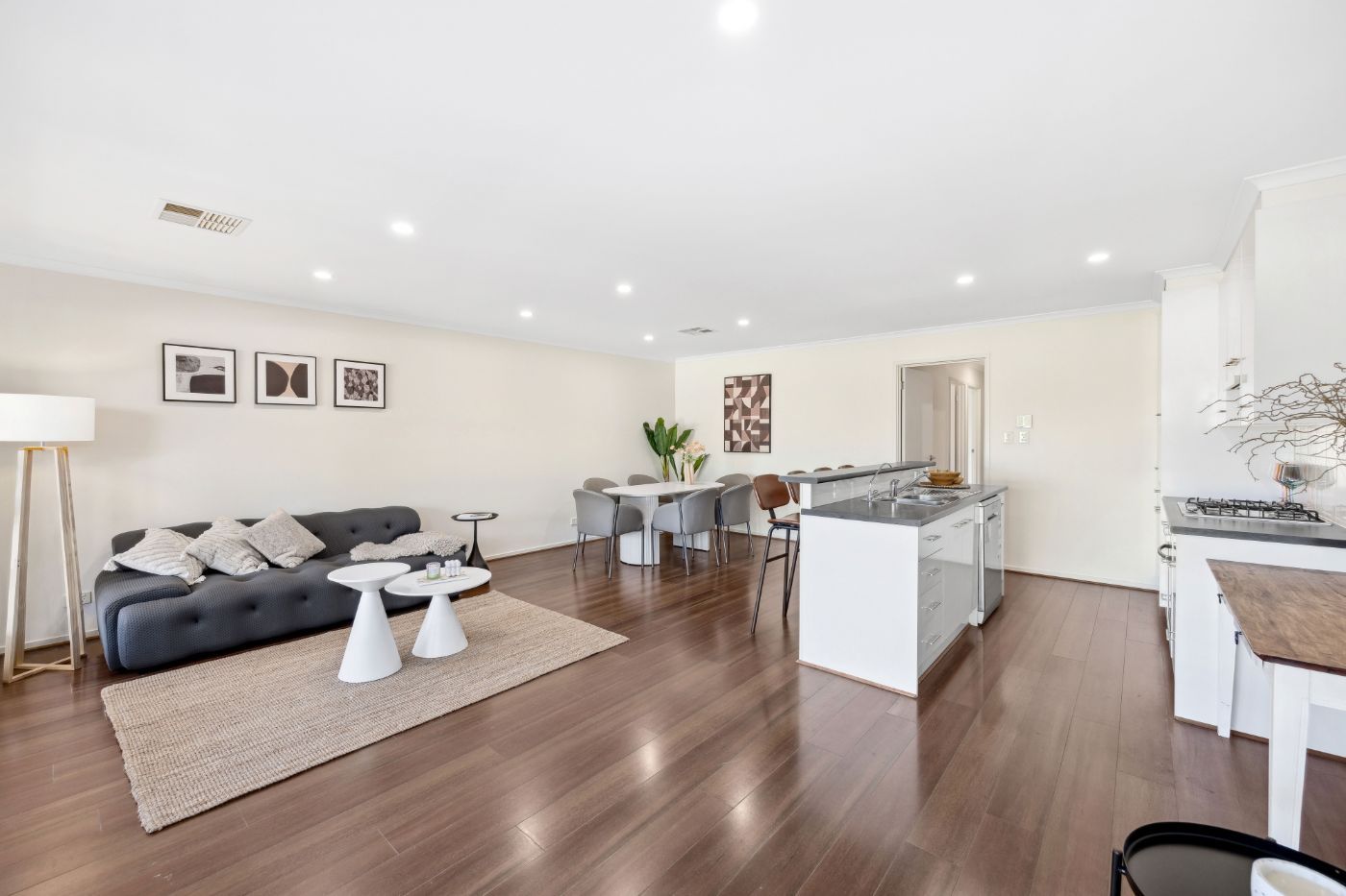 这栋现代宽敞的住宅地理位置优越,靠近Greenacres购物中心和Klemzig换乘站,提供理想的便利与舒适结合。距离阿德莱德市中心仅7公里,居民可以轻松享受城市设施,同时享受宁静的郊区环境。房产包括带独立浴室和步入式衣柜的主卧室,以及两间配有内置衣柜的大卧室。此外,还有一个独立的用餐区和起居区,提供充足的放松和娱乐空间。