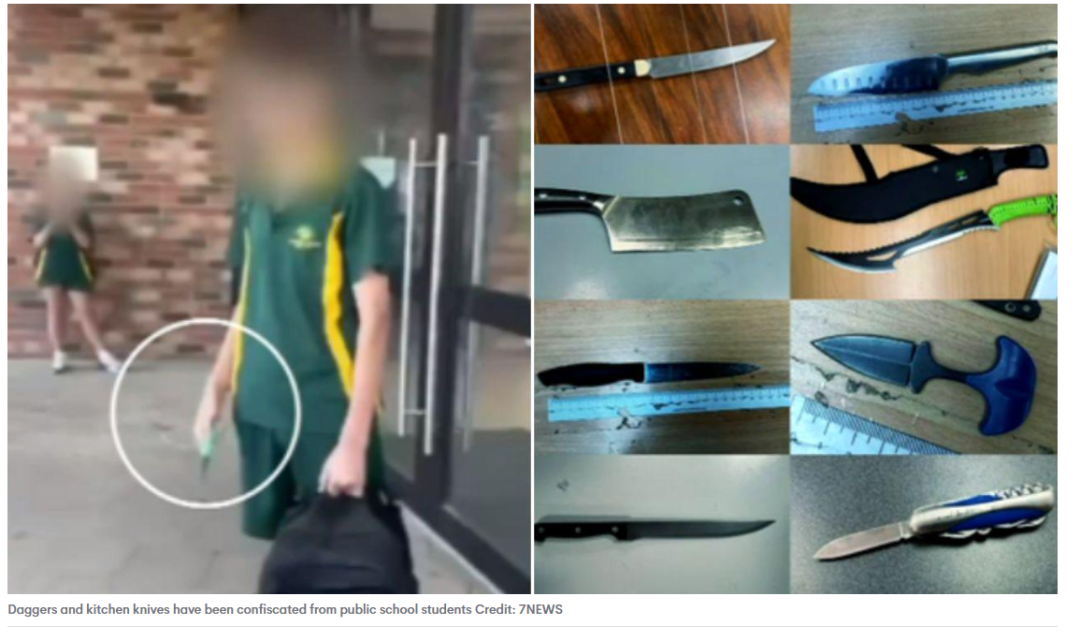 据《7news》报道,南澳公立学校缴获的武器数量惊人,学生书包里藏着剁肉刀、砍刀和匕首。过去一学年,平均每周发现一件危险武器。