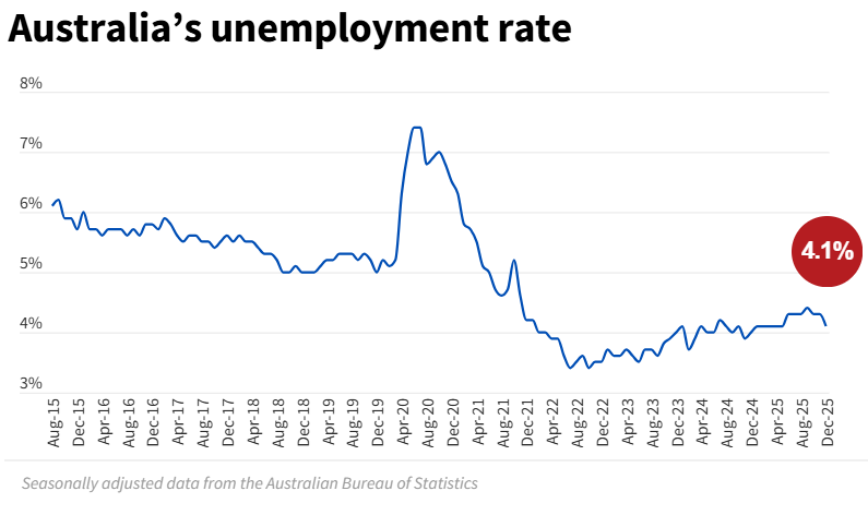 标题: 澳就业市场开局稳健:1月新增1.78万岗位,失业率维持4.1%!
