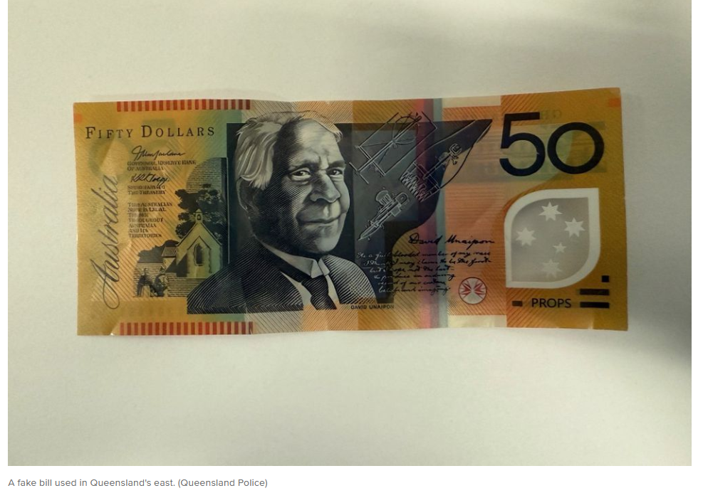 昆州警方表示,在Mackay地区的餐厅、商店和加油站均发现了面值为50澳元的假币。