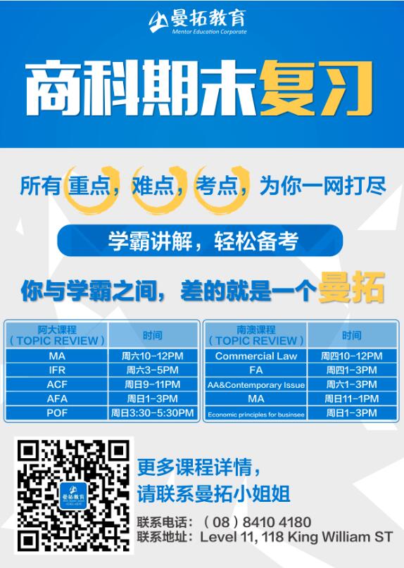 • 【曼拓】阿大,南澳商科期末复习班已全线启动啦~~