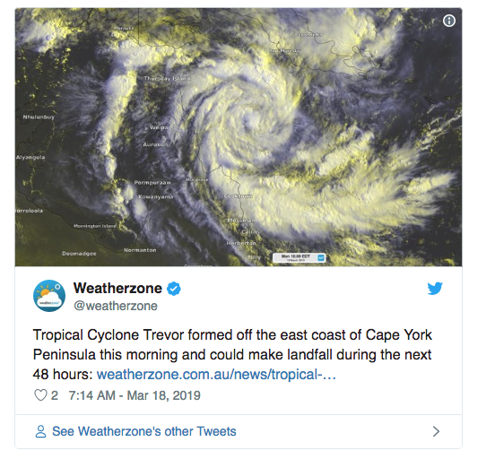 BOM天气服务经理Richard Wardle表示,飓风将继续向西南偏西移动,预计将在本周三或周四逐渐进入Carpentaria湾。 这场风暴预计会在穿越Cape York 半岛之前减弱为一级飓风,然后在明天穿越Gulf of Carpentaria ...
