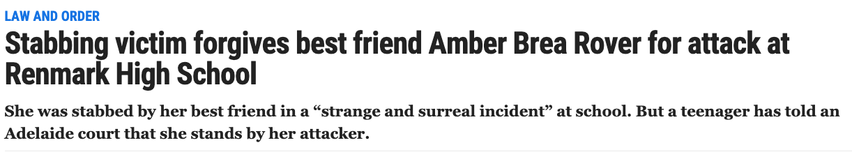 由于受精神疾病的影响,一年前,南澳一名少女将刀刺向了自己最好的朋友! 但是今天在法庭上,受害者不仅原谅了她,还表示她们是一辈子的好朋友! 真挚的友情令在场的所有人都为之动容。 法 ...