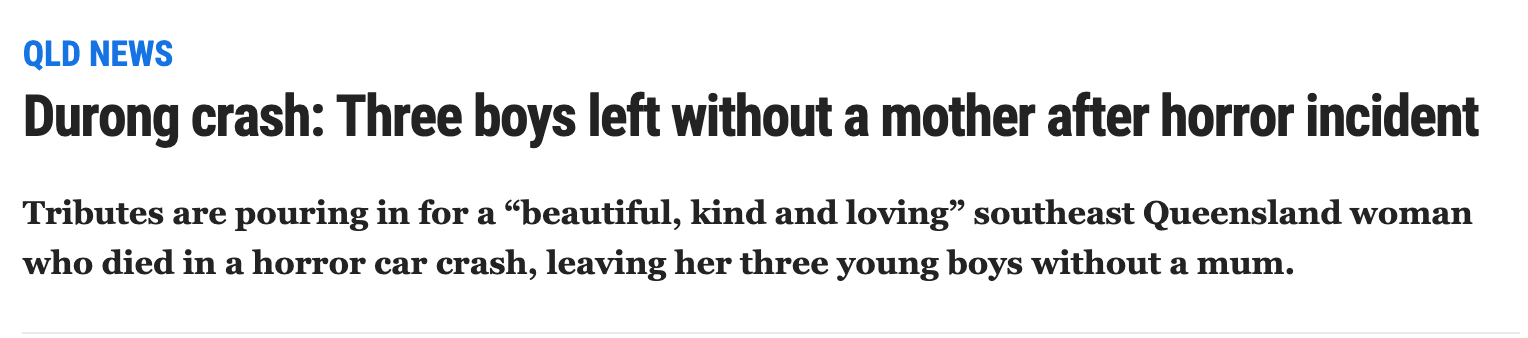 昆士兰东南部的一位母亲不幸在车祸中身亡,留下了她的三个孩子。 Sabrina的堂兄Roxanne Peake形容Sabrina“美丽,善良,充满爱心”。 他们小时候在凯恩斯以南的Babinda一起成长,拥有许多美好的回忆。 ...