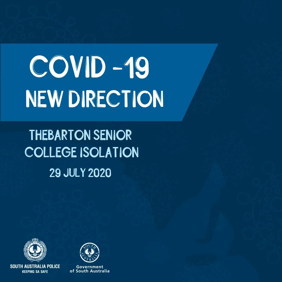 由于昨日确诊的Thebarton Senior College的学生病例,南澳警方已发出公告,要求在7月29日至31日之间,去过该校,或与该校学生或教职员工有过密切接触的人士必需在家隔离14天,并严格遵循医护人员的要求。 目前 ...