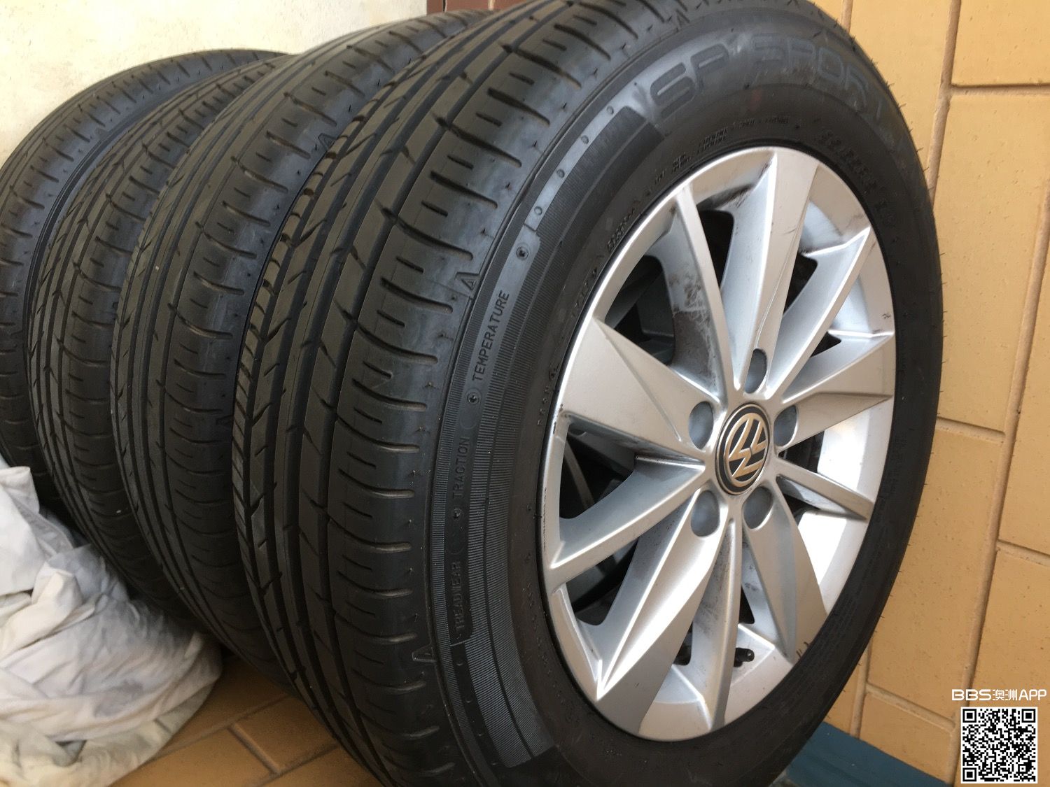 195/65/R15, four new tyres, minor scratch on 2 rims shown on photos, $450 Henley Beach area self pick up Contact: 0449750120