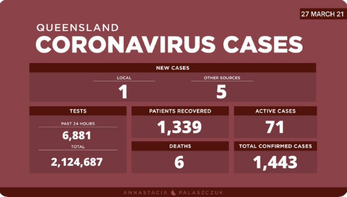 新冠肺炎疫情通报: 昆士兰又新增1例COVID-19本地病例! 在过去的24小时例,昆士兰州记录了6例新冠病毒病例,其中一例是当地感染的确诊病例,与周五宣布病例的一名26岁男子有关。 新的限制是什么? ...